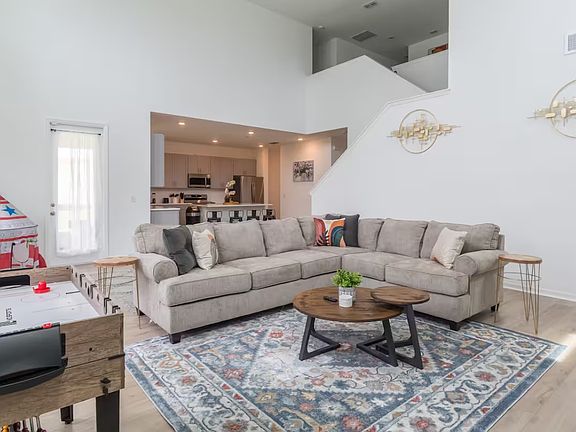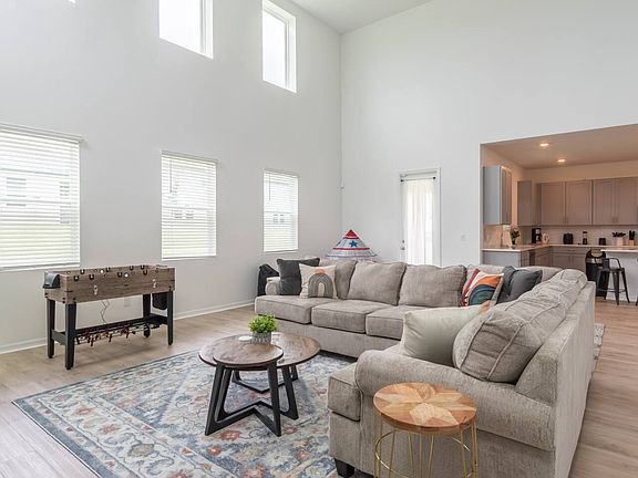 Come view this newly built, fully furnished 4-bed/3.5-bath home with a 2-car garage in the Championsgate area! Located within minutes of shopping, grocery stores, and theme parks, with easy access to I-4 and HWY 27, and is just minutes away from Posner Park and Champions Gate Village. On the first floor, you'll be greeted by a spacious high-ceiling great room featuring large windows with plenty of natural light, complemented by a powder room. The large kitchen offers ample counter space, a pantry closet, and an island topped with quartz, open to the great room and dining room. The primary bedroom is upstairs, along with all the bedrooms, including the laundry room for added convenience. This home features plenty of upgrades, such as beautiful 42-inch gray mist kitchen cabinets, wood-look luxury vinyl plank flooring throughout the main living space, and upgraded carpet for bedrooms. Amenities include a pool, fitness center, tennis courts, playground, and beach volleyball court. Sorry, no pets. $95 non-refundable application fee per applicant. Qualifications: Income 3X rent, credit score of 700 plus, and background checks. Equal Opportunity Housing. (Can be rented unfurnished at $2,800, available for an October move-in).