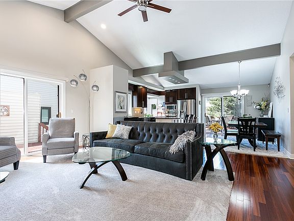 This Bi-attached townhome is unlike any other out there. The main level features open concept living w/ a great sized living room, gorgeous kitchen & dining area, all w/ gorgeous hardwood flooring. The kitchen features granite counters, SS appliances, large island w/ breakfast bar, dovetail cabinetry & open to the Living room. All w/ vaulted ceilings. There's a deck area off the living room and another off the kitchen/dining area. Mstr suite w/ 3/4 bath & two addt'l bdrms w/ a full bath complete the main level. As if that is not enough, the LL is a dream. Another large Living Room w/ gas fireplace, wet bar, 1/2 bath, bdrm w/ built in shelving & another room that can be anything you like. Daylight windows add tons of light. Attached 2 car garage complete this gorgeous home. There is a community pool & community center included w/ the low $225 /month dues. Roof is approx 3 years old. You will not find anything out there like this. It is a must see!