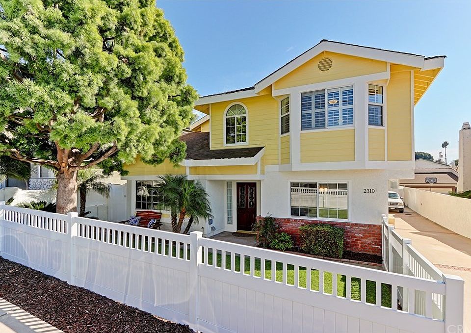 Welcome Home! This absolutely charming home will capture your attention the minute you see it, with a white picket fence, grassy front yard and a welcoming bright yellow exterior. Step inside and you'll instantly fall in love with the soaring high ceilings, cozy fireplace and window seat in the formal living room. Adjacent to the living room is the formal dining room, conveniently located next to the spacious kitchen with stainless steel appliances and abundant counter and cabinet space. This downstairs living area expands even further into a breakfast nook off the kitchen and a spacious family room. French doors off the family room lead you to a private side patio perfect for setting up your outdoor dining table and BBQ! Imagine entertaining friends and family inside and out in this expansive living space! Upstairs you'll find four bedrooms including a massive true master suite with cathedral vaulted ceilings, a fireplace, sitting area, private outdoor patio, walk-in closet and en suite bathroom! Other great features of this home include a laundry room conveniently located on the second floor, built-in storage in the garage and endless natural light throughout. Located in the award winning Redondo Beach school district, shops, restaurants and the beach - don't wait to make this incredible house your home.