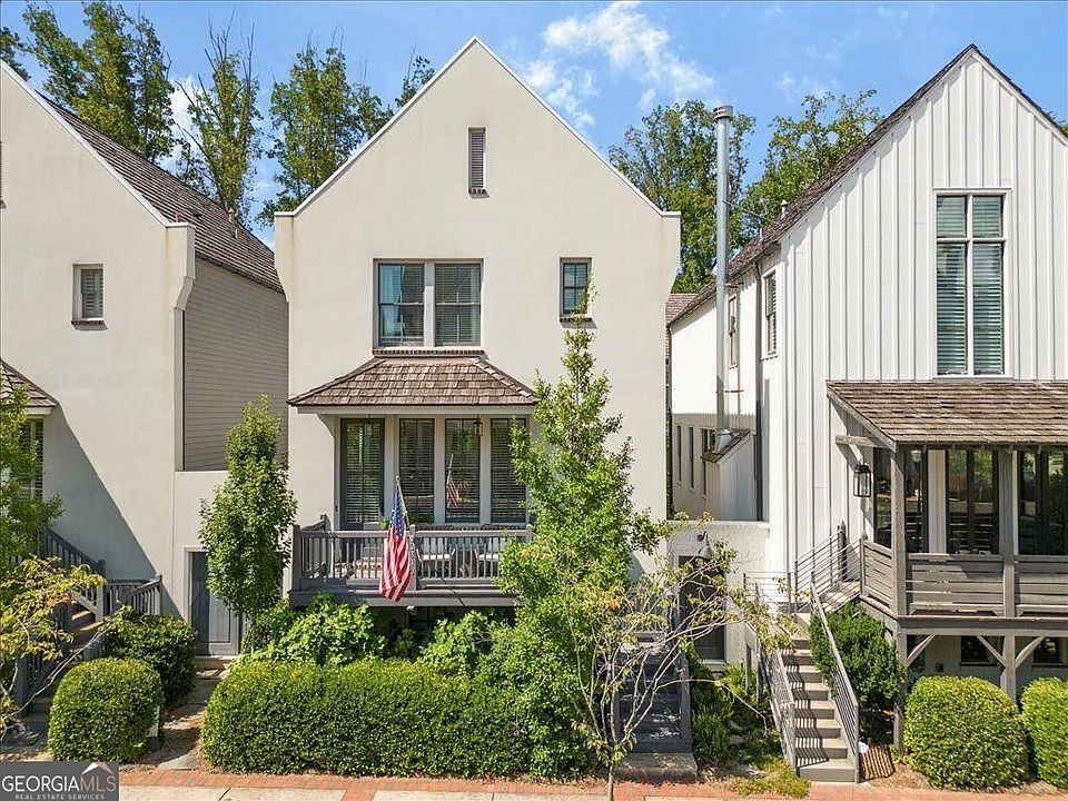 Welcome Home! Situated in the heart of the Alpha Loop, this home offers convenient access to some of Alpharetta's most popular destinations. 0.6-mile to Avalon, known for its theater, dining, shopping, and year-round events, and just 0.2 miles to Downtown Alpharetta, home to more than 30 chef-driven restaurants, boutique shops, a seasonal farmers market, and community festivals. Voysey, a Hedgewood Homes community, is recognized for its French-inspired architecture, shake roofs, and thoughtfully designed streetscapes. The covered front porch opens into a light-filled, open-concept main level featuring a spacious living area, dining space, new dry bar and a chef's kitchen appointed with Quartzite countertops, stainless steel appliances, spacious pantry, and an island with seating. The upper level includes the primary suite with marble-topped dual vanity and a seamless glass-tiled shower, plus two secondary bedrooms sharing a full bath. The finished terrace level offers an additional en suite bedroom along with space suitable for a home office or fitness area. Additional features include hardwood flooring on all levels, a 2-car garage with storage, and proximity to highly rated schools.