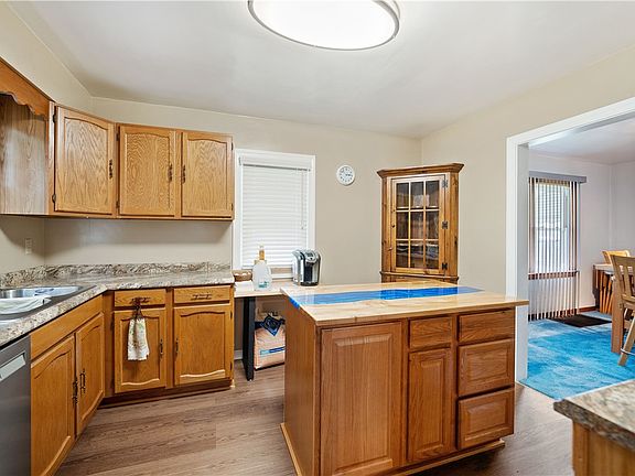 Welcome to this 2story vinyl three bedroom & two full bath home. The living room features a cozy wood burner fireplace, mantle and hearth. The updated kitchen boasts new cabinetry, refrigerator, gas stove, dishwasher and microwave. The center island makes cooking a breeze! New durable Life Proof floor. The formal dining room provides a great setting for family & friends. Upstairs you'll find three nicely sized bedrooms, each offering comfort, privacy & ample closet space. A full bathroom with a tub shower combination, vanity and commode serves the upper level. Built in storage in basement. A full bathroom w/ a walk in shower, vanity and commode is next to the open laundry area. Outside, the fenced in yard ensures privacy and security, while off street parking pad for approx 5 vehicles & one car integral garage. Large covered side porch leads to the backyard. Soak up the sun in the 24ft round heated pool and upper deck. Have hobbies? You'll love the outside work shop with electric!