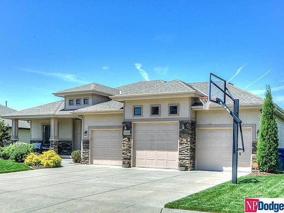 Wonderful welcoming home that is move in ready! The home greets you with soaring ceilings, open floor plan, gorgeous hardwood floors, tons of natural light w/custom blinds & neutral colors. The large family room has a corner fireplace w/floor to ceiling stone and is open to the spacious eat-in kitchen plus a covered deck right off the dining area. All the appliances are included w/this home even the brand new refrigerator. The primary suite includes 2 walk-in closets, tile walk-in shower, whirlpool tub & double sinks. Every space in this home is useful from the drop zones to the main floor laundry & all the closets. Downstairs you will find a rec room, large wet bar, 2 bedrooms, 3/4 bath and HUGE storage area. In the backyard a paver patio w/gas fire pit, seating wall, decorative lighting, professional landscaping, iron fence and sprinkler system. Oversized heated garage is 1000 sq ft w/polyaspartic floor. Close to schools, parks, shopping & Dodge Expressway.