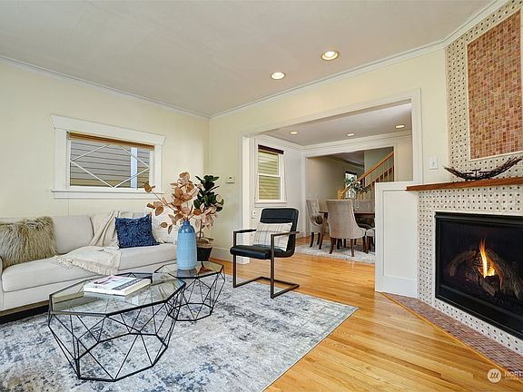 Beautiful updated charmer located in the desirable Tangletown area of Green Lake. Originally built in 1906 with a full remodel & addition added in 2001 leaving all the charm & adding in modern conveniences. Main level features formal living room w/ custom tile gas fireplace, dining room, large open kitchen w/tile counters, SS appliances, gas stove & eating bar that opens to the large family room. The main level bedroom w/full bath makes for a great home office. Upper level w/vaulted ceilings, large primary bedroom, full bath & 3rd bedroom. The back yard deck & patio area are perfect for summer BBQ's & gardening. Hardwood floors through-out, updated plumbing & electrical, & home has been professionally retrofitted. A Walker’s Paradise