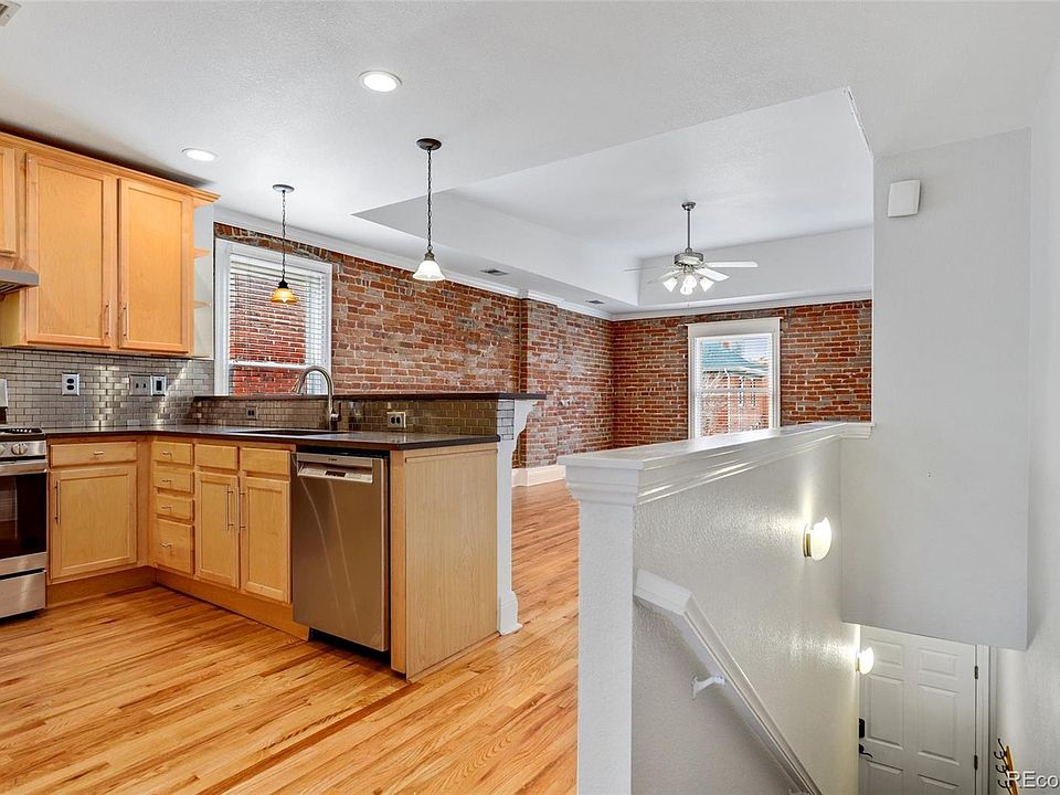 Enjoy the best of city living in this updated condo in the heart of Denver's San Rafael Historic District neighborhood! The main living floor is flooded with abundant natural light through many large windows and features charming exposed brick walls. The upgraded kitchen sits at the heart of the home and features beautiful cabinetry, granite countertops, and a chic tile backsplash. Sightlines from the kitchen lead into the open living and dining room spaces where the gorgeous hardwood flooring continues. Down the hall, discover the sunny and spacious bedroom that features a Juliette balcony, a large closet, a ceiling fan, and en-suite access to the full bathroom. Enjoy everyday convenience with an in-unit washer and dryer, central AC, and a reserved parking space! Enjoy exploring your new neighborhood and taking a stroll down the tree-lined streets to many local restaurants, shops, and bars. Just moments away from Rino Arts District, Downtown Denver, City Park, and Capitol Hill, this location is the best of Denver living! Seller's circumstances have changed and they had to relocate out of state. Please note brand new carpet and paint were completed in the last 3 months. Home found to be beyond satisfactory. Unit is a second-story condo with all living areas on one main level.