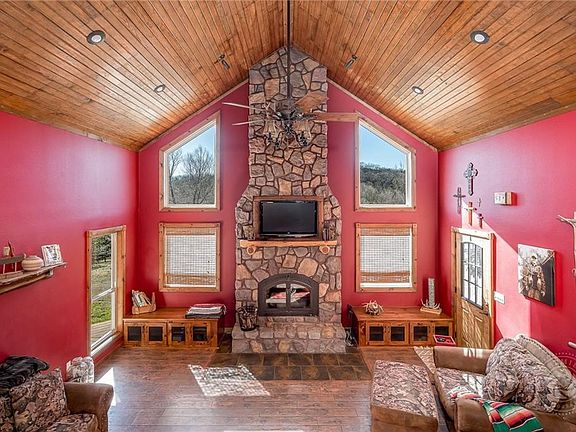 Amazing custom built log style home on 6.7 acres in Alma school district on a paved road! This home features a beautiful rock fireplace, custom log staircase, tall vaulted ceilings, and so much more. Master suite has its own access to a gorgeous deck overlooking the property, walk in closets, and a uniquely designed jetted tub in master bath. Eat in kitchen has quartz counters and pantry. Home has 5 bedrooms and 3 bathrooms. Property has a pond and two outbuildings as well. This home is a must see!