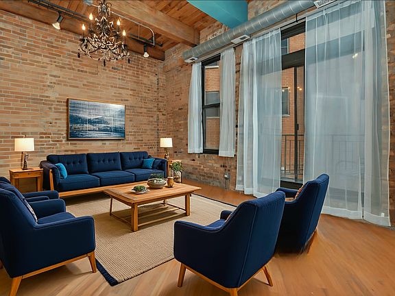 Private balconyPrivate balcony accessHigh ceilingsCorner condoVersatile denExposed original timber beamsSpacious open floor plan