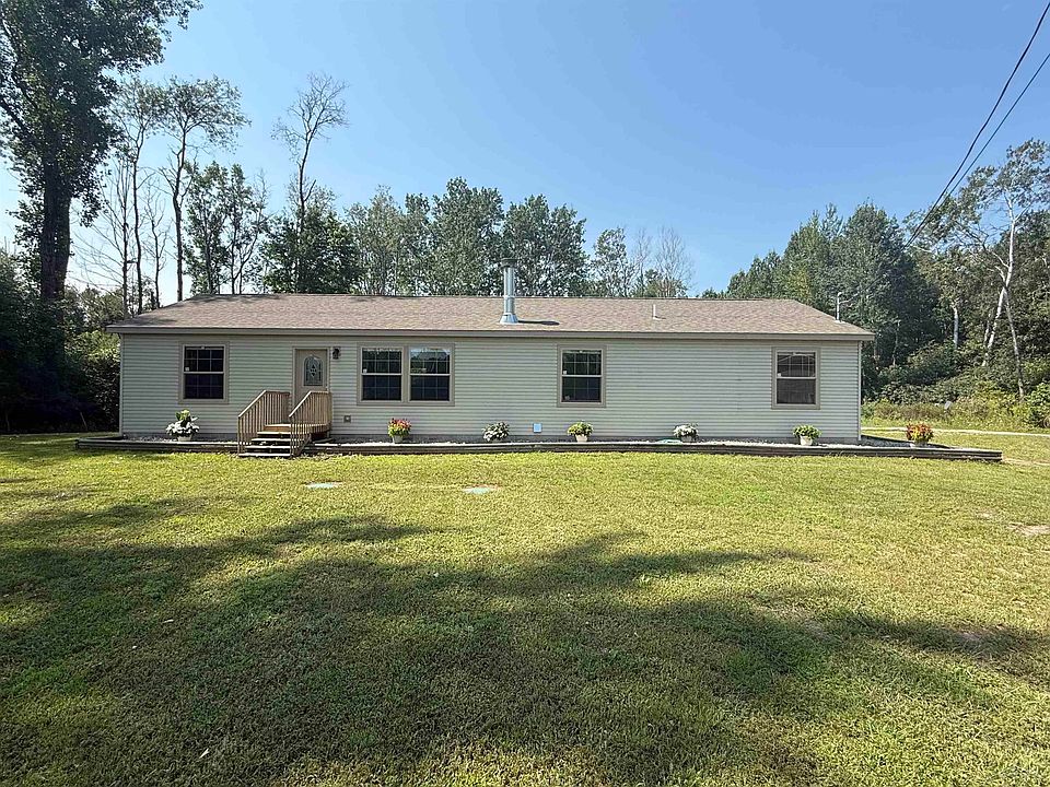 This beautiful 3-bedroom, 2-bath ranch-style home offers 1,800 square feet of comfortable, modern living, all on a serene 3-acre parcel. Built in 2018, the home features an open-concept layout with durable vinyl flooring, a cozy wood-burning fireplace, and central air conditioning for year-round comfort. The spacious kitchen and living areas flow seamlessly, making entertaining a breeze, while the main floor laundry adds convenience to everyday life. The primary suite offers a private retreat with a stunning tiled walk-in shower and ample closet space. Step outside onto the expansive 30x16 back deck—perfect for relaxing or taking in the peaceful surroundings. A newer well and septic field, an owned water softener, and a 500-gallon propane tank (included with the sale) add extra value and peace of mind. A true standout is the 60x40 spray foam-insulated pole barn, ideal for storage, workshop space, or hobbies. Located on a paved road with a recently completed survey, this property combines modern amenities with rural charm—perfect for those seeking space, privacy, and functionality. Don’t miss your opportunity to own this exceptional slice of country paradise!