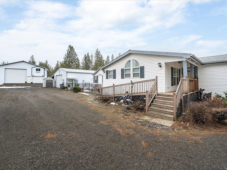 Located just 2 miles west of Fairchild Airforce Base, this breathtaking property is nestled within peaceful surroundings and offers a one-of-a-kind living experience. This beautiful property features a 1995 triple-wide on foundation that offers a spacious daylight basement that was recently remodeled and features an in-law setup. With 3488 square feet of living space, this home also features 5 bedrooms and 3 bathrooms, ensuring ample space for the whole family with 2 primary bedrooms. The property includes two heated shops, a shed, and a greenhouse, all perfect for those with a passion for hobbies or who need space to work. With 5.21 acres at your disposal, endless opportunities for outdoor activities abound. Located just minutes from Airway Heights and only 15 minutes from downtown Spokane. Home is handicap accessible with ramps, roll-in shower and Stairlift installed.