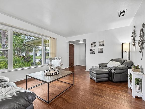 Welcome to this home filled with amazing potential, located in Fairway Estates, one of Dunedin’s most sought-after golf cart approved neighborhoods. This spacious 4-bedroom, 2-bathroom residence offers a desirable split bedroom floor plan that ensures privacy for the primary suite while maintaining a natural flow throughout the living spaces. The home features both a formal living room and a more casual family room, creating flexibility for entertaining, relaxing, or setting up a home office. The kitchen is open to the family room and includes a convenient pass-through window to the lanai, making gatherings easy and enjoyable. The large 200 square foot covered and enclosed lanai, while not currently included in the 1,753 heated and cooled square footage, could easily be converted to additional air-conditioned living area, significantly expanding the footprint of the home and its value. The primary suite includes its own ensuite bathroom for convenience and comfort, while the additional three bedrooms and full bath offer plenty of room for family or guests. Beautiful wood flooring runs throughout the main living areas and the primary bedroom, adding warmth and charm. The secondary bedrooms feature classic terrazzo floors and tile, with the terrazzo ready to be refinished to restore its mid-century modern appeal. Major updates provide peace of mind, including a roof replaced in 2023, HVAC system in 2024, water heater in 2019, and updated windows installed between 2011 and 2013. The property is located in Flood Zone X where lenders do not require flood insurance and a Non-Evacuation zone, giving homeowners the benefit of reduced insurance concerns and security during storm season. Fairway Estates has an active but VOLUNTARY/Optional Civic Association ($65 for the entire year) and NO DEED Restrictions! It is a great active/social community to live in! This home is all about location as much as it is about opportunity. Dunedin is known for its small-town charm with big lifestyle benefits. Just minutes away you’ll find the recently restored Donald Ross-designed Dunedin Golf Club, Honeymoon Island and Caladesi Island State Parks, and the miles-long Pinellas Trail. Nearby Highlander and Hammock Parks offer beautiful green space, while Dunedin Community and Fine Arts Centers provide endless activities and cultural experiences. Best of all, you are just a short golf cart ride to Delightful Downtown Dunedin with its vibrant mix of shops, restaurants, breweries, and festivals. With its solid foundation, recent system updates, and unmatched location, this property is the perfect opportunity to create your dream home while enjoying everything that makes Dunedin such a special place to live.
