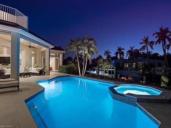 Situated on an oversized lot in the estate section of Royal Harbor this property has been completely renovated with a new roof, impact windows and doors, whole house generator and magnificent gourmet kitchen. This impeccably maintained home boasts exquisite finishes throughout. The stunning kitchen and family room area with Italian teak flooring features casual dining, breakfast bar, fireplace, and beverage center. The spacious first floor master bedroom retreat includes an impeccably designed master bath with marble flooring, soaking tub, separate shower, and dual closets. Every main room opens to the re-designed pool, spa, lanai, and terraced wood deck areas. Tropical landscaped grounds and western exposure complete this inviting outdoor living space for relaxed family living or entertaining friends. Located on intersecting canals, the deep water dock with lift provides quick, direct access to Naples Bay and the Gulf of Mexico.