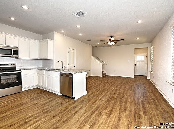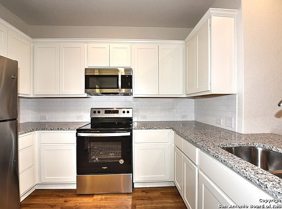 SPECIAL - 1/2 month's rent as deposit with resident score of 700 or higher. Welcome to your new home on the Northwest side of town! Conveniently located off Loop 1604 and Marbach in a secure gated community, this beautifully upgraded 3-bedroom, 2.5-bath home offers both comfort and style. Enjoy access to three community parks featuring a dog park, basketball court, and playground. This home boasts numerous upgrades, including granite countertops in all wet areas, 42-inch cabinets, stainless steel appliances (refrigerator included), subway tile backsplashes, vinyl plank flooring throughout, and a water softener. The 1.5-car garage and privacy fence offer added convenience and peace of mind. The HOA covers front lawn maintenance and access to two gated entrances, while a $65 monthly water/sewer fee keeps things simple. You're just minutes from Lackland AFB, SeaWorld, and Alamo Ranch shopping, making this an ideal location for both work and play. Don't miss this opportunity-schedule your tour today!