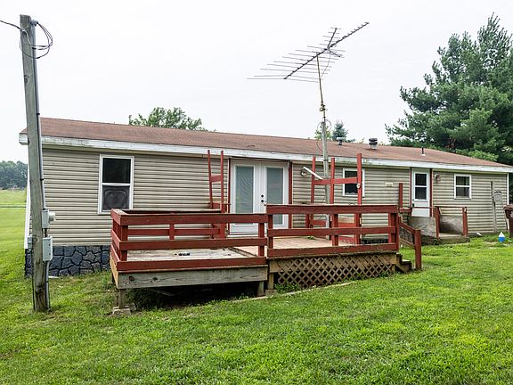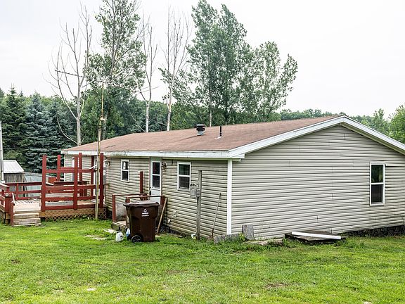 Manufactured ranch with 3 bedrooms 2 full baths. The main bedroom as a full bath and a walking closet. French doors from the dining area leads to the back deck and back yard for cook out, relaxation or admiring the abundant wildlife. The almost 9 acres is comprised of 3 separate parcels. Also a second well and septic where a mobile home used to be. The garage is 30 x 40 with 220 amp, concrete floor and a propane heather. Another building with a work area. 2 utility sheds and a nice newer 8 x 10 shed .Play equipment Plenty of storage for the toys, yard tools and patio furniture. Easy to show. Room enough to build.
