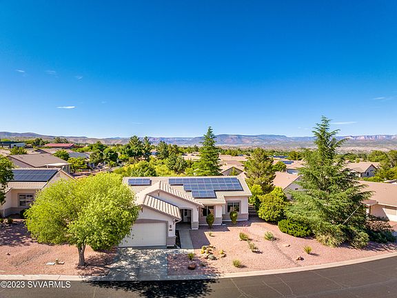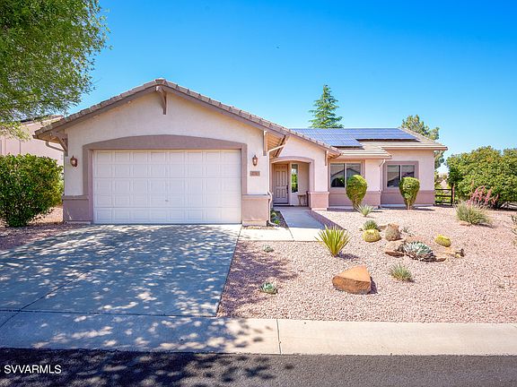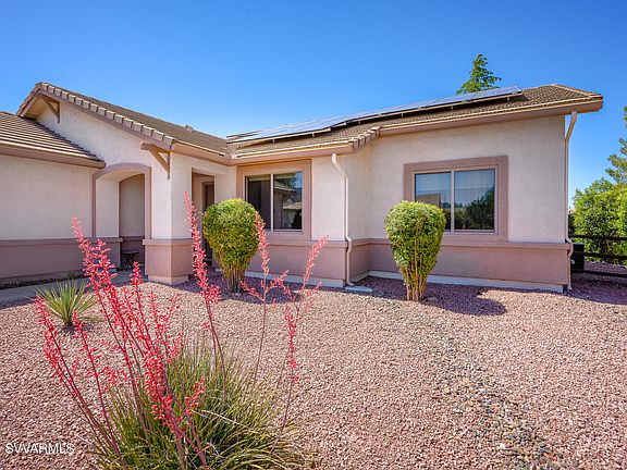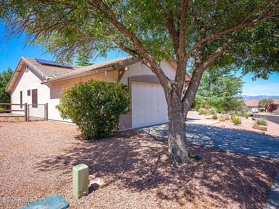 Welcome to Cottonwood Ranch, nestled against the foothills of Mingus Mountain. This home w/ split floor plan offers 3 bedrooms, 2 baths and open living & dining concept. The primary bedroom includes large ensuite bath & walk-in closet w/ dual vanities. Newer Renewal by Andersen windows & solar make heating & cooling highly efficient. On the covered patio, you are surrounded by various large shade trees & fragrant blooming star jasmine. Backing to green space, enjoy a secluded retreat in your own yard. The Community Clubhouse, features a heated salt water pool, spa, library, gym & bocce courts. Walking paths and area park add to the list of amenities. Located within minutes to shopping, restaurants, & area hospital; all just 25 minutes to Sedona. Your home awaits at Rustler Lane!