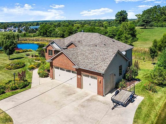 Stunning suburban estate complete with 2.5 acres and a fishing and small boat pond. This 5 bedroom, 3 1/2 bathroom home has a 3-car garage and a full walk out basement, giving you over 3,500 sq. ft. of spacious living and entertaining options. You will experience unbelievable sunsets from the back deck, while relaxing in the many outdoor areas, or looking out many of the side and rear windows. The views are truly breathtaking. You will be in awe of the yard, especially the flowers, and the peaceful country like setting. The interior includes many updates, open spaces and a master bedroom en suite retreat. The lower level offers a huge living space, kitchenette, 2 bedrooms, a full bath, exercise room, and extensive storage options. Convenient access to local elementary and middle school. Perfect for a family to grow up in or come back home to!