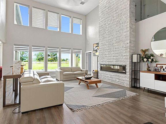 Luxury meets tranquility in this exceptional Chenango Ranch estate! Nestled on 5 pristine acres, this 6-bed 4-bath custom home offers over 4,500 sq ft of refined living. A grand foyer welcomes you with soaring ceilings, designer lighting and a stunning stone fireplace.