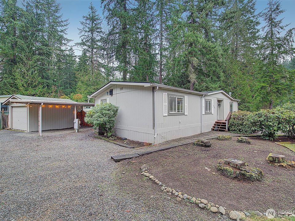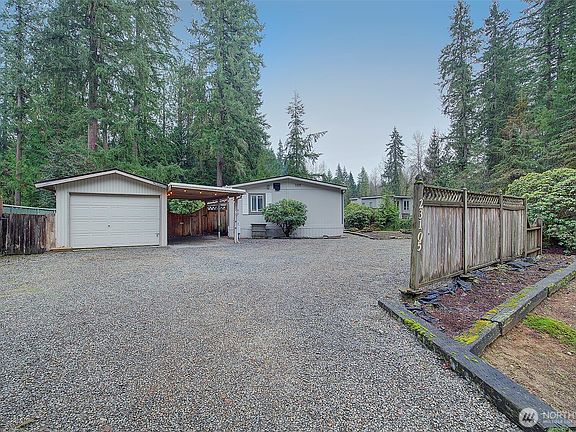 Well maintained home on beautiful 1/3 acre lot just north of Woodinville! Home has outstanding natural views from all windows and features 3 bedrooms and 2 full baths. Spacious kitchen w/vaulted ceilings, pine millwork, wainscoting & chair rail throughout home. Oversized primary w/closet organizers, full bath & soaking tub. The lot has ample parking and enough space for a large RV with separate power hookup. Large storage outbuilding looks like garage, but not long enough for car - would be great for bikes or motorcycles etc. & has attached carport. Garden shed in corner of rear yard. Park-like lot with fire pit area, fenced rear yard and plenty of garden space. Working freezer & 2 portable air conditioners stay with property.