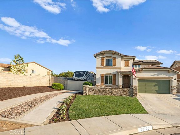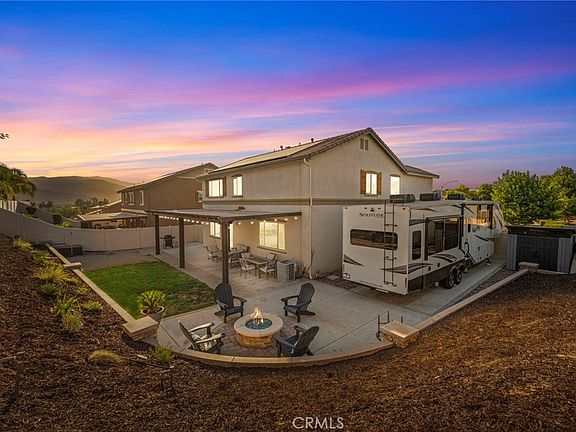 Check out this rare find that sits along the Murrieta/Wildomar border! Over 45 Feet of RV/Boat Parking + Solar-Powered Efficiency! This stunning 2,809 sq. ft. home showcases true pride of ownership, offering 5 bedrooms + a loft and 3 full bathrooms—including a convenient downstairs bedroom and bath. Step inside to a spacious open-concept layout with sleek 20x20 tile flooring that flows seamlessly from the entryway to the living room, kitchen, and dining area. The chef’s kitchen is an entertainer’s dream, featuring a massive 12-foot island, luxurious granite countertops, rich dark wood cabinetry, stainless steel appliances with a double oven, and a custom-built bar cabinet with a wine fridge. Plus, enjoy pristine alkaline water straight from the sink and fridge, thanks to the home’s advanced water filtration system. A walk-in pantry provides all the storage you need! Upstairs, you’ll find four additional bedrooms, a spacious loft, and a master suite designed for relaxation, complete with a large walk-in closet, dual sinks, and a separate shower & soaking tub. The upstairs laundry room offers plenty of storage for added convenience. Love outdoor living? This home delivers! Enjoy breathtaking sunsets from the welcoming front yard foyer or unwind in the expansive backyard featuring a brand-new Alumawood patio cover, a gas fire pit with fire glass, and a garden shed. With nearly 1/4 acre of space, this property offers exceptional privacy, in a prime location. Just minutes from the 15 & 215 freeways, shopping centers, Inland Valley Hospital, parks, Santa Rosa Plateau for hiking and biking, this energy-efficient Lennar home is truly move-in ready. Don’t miss this incredible opportunity! Call your favorite Realtor and schedule your private showing today!