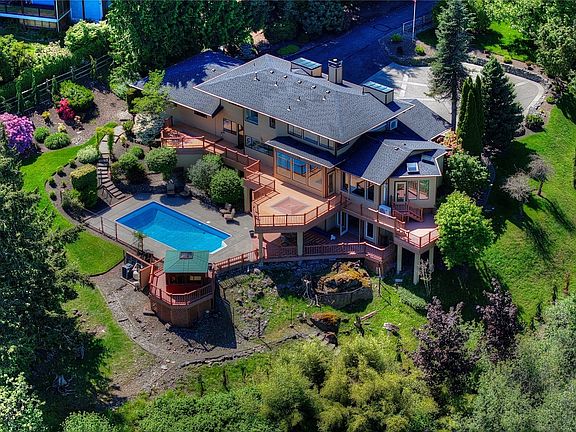 Unobstructed, Spectacular Up Close Mt. Rainier View with full panoramic Foothills and Puyallup River views below. The very best view you can imagine. So breathtaking that you will not want to ever leave! First time on the market in over 25 years, this stunning setting takes advantage of the peaceful surroundings of nature, but also boasts the element of fun and entertainment. In ground pool, basement rec room, pool table, decks, patios and more. This is a true estate setting with gated entrance, paved driveway and manicured lawns. The Country features walking & riding trails & clubhouse. Adjoining 4 parcels of 2.11 acres are also available for ultimate privacy or building opportunity later.