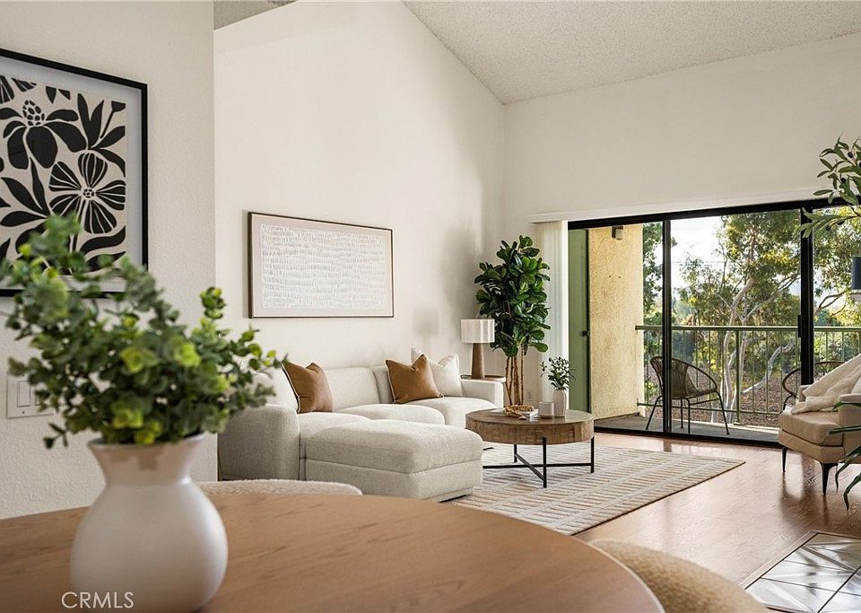 Penthouse Condo with Loft & Stunning Views in Orange Tree Terrace, Irvine. Welcome to your new home in the desirable Orange Tree Terrace community, a rare top-floor penthouse with unobstructed views of wide-open spaces. This light-filled 2-bedroom, 2-bath condo PLUS loft offers an airy, spacious feel thanks to soaring vaulted ceilings, freshly painted crisp white walls, and tile and laminate flooring that enhance the open layout. Enjoy a bright white kitchen with tiled counters, white cabinetry and stainless-steel appliances, open to the spacious living room with fireplace. The primary suite and adjacent bathroom have ample closet space, two sinks and a tub/shower combo. The secondary bedroom has its own bathroom with walk in shower. The versatile loft is ideal for a home office, guest space, gym, or creative studio — bathed in natural light and open to the spacious living area below. The expansive balcony runs the full length of the condo, providing gorgeous views from every room. This secure three-story building features elevator access, so getting to your penthouse — or down to the subterranean parking garage — is effortless. No stairs are needed! There’s also ample guest parking just outside the building and controlled access for visitors, offering peace of mind and convenience. This condo also offers indoor laundry. Enjoy resort-style amenities including a sparkling pool, spa, tennis and pickleball courts, and more. The HOA covers water, and with all electrical appliances, your overhead is minimal. Located next to the Oak Creek Golf Course and minutes from Irvine Valley College and other top-rated educational institutions, superb shopping and easy access to many freeways, this home places you in the heart of Irvine — one of the safest, most sought-after communities in Orange County. Come experience the comfort, convenience, and lifestyle that make this penthouse condo truly special.