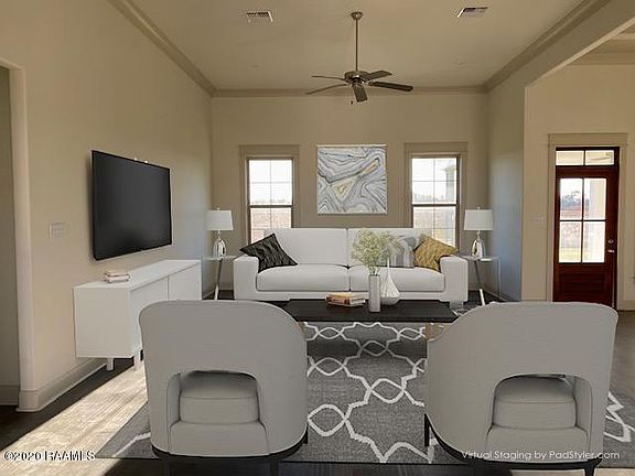 Farmhouse style home on a large corner lot in the new residential development Atchafalaya Trace. Three bedrooms, 2.5 baths, open floor plan with all the white & gray that everyone loves!! Beautiful granite countertops,gray wood floors, shiplap wall, barrel ceiling in master bathroom & outdoor fireplace overlooking proposed pond(island will be built in kitchen). So many reasons to schedule a showing and see this home for yourself!