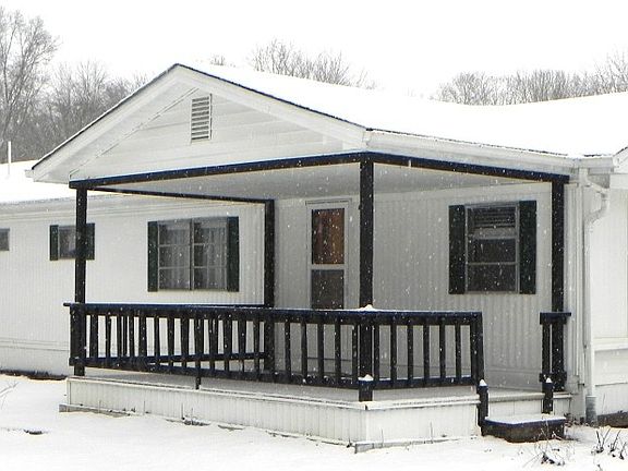 Pymatuning camp with nearly an acre of a surveyed, cornered lot on level land in a quiet area not far from the lake. This property includes a detached 24x24 party room that can double as a bunkhouse, complete with a wood stove for those cool evenings and accommodating extra guests. Updates include a new metal roof, ceiling insulation, ceiling tiles, two front windows, a six-foot sliding glass door, and carpeting. The mobile home has been meticulously maintained and features several updates, such as new carpeting throughout, a remodeled bathroom, a new countertop, an electric range top, a stainless-steel sink with faucet, exterior freshly painted, new electric on pole installed and interior inspected by a licensed electrician. The front covered porch offers a cozy space for relaxation, also with new carpeting. Additionally, a storage shed for your equipment or toys comes with a new metal roof and soffit/fascia, while the driveway has been graded and graveled for convenient access.