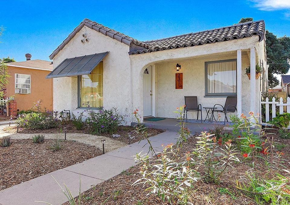 Come home to this charming 2 bedroom Spanish style home in West Long Beach. A recently landscaped front yard with drought tolerant plants and a lovely, traditional front porch provide great curb appeal. Inside, you'll find updated flooring throughout, a spacious living room with tray ceilings, and a separate dining room with built-in storage. The updated kitchen has lots of storage space and abundant counters. There are two spacious bedrooms, and a large vintage style bathroom with beadboard wainscoting and honeycomb tiled floors. The back yard is perfect for outdoor living and entertaining, with a huge patio space, a large grassy area, fruit trees, and raised beds for your future garden. The detached garage and extra long driveway provide plenty of off-street parking. Conveniently located near schools and transportation.
