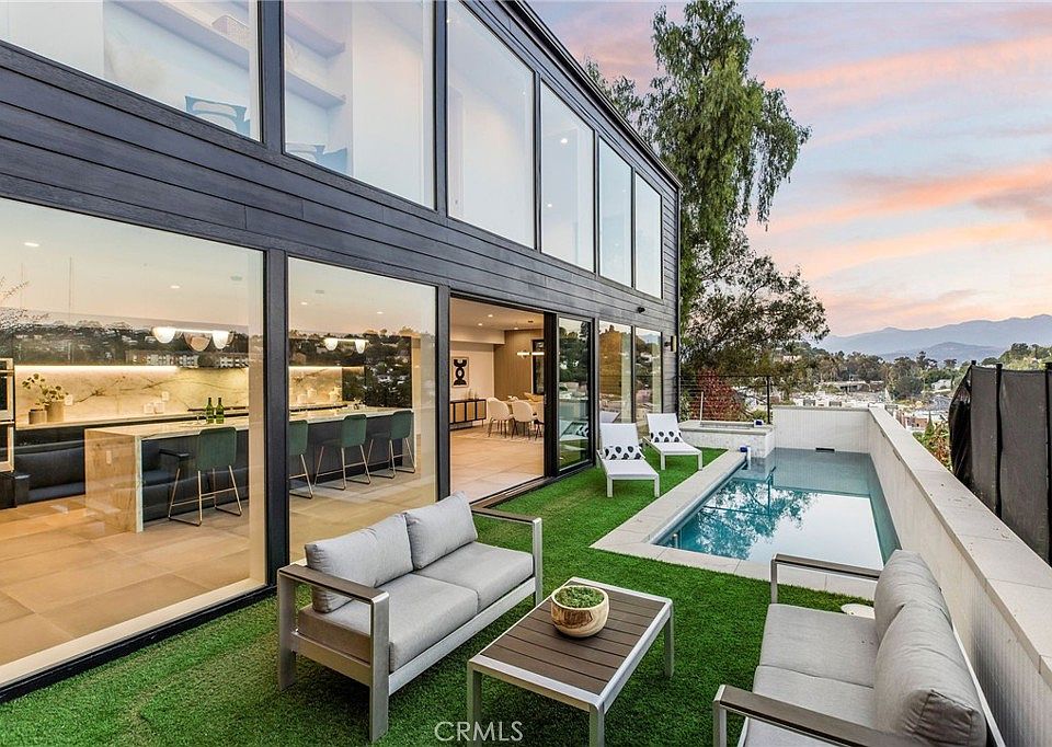 Perched at the pinnacle of iconic Silver Lake positioned impeccably for unparalleled privacy while simultaneously offering sensational views. Stylish and spacious urban contemporary living meets peaceful tranquility. Upon entry, indulge in a sophisticated open concept design featuring a plethora of designer finishes with abundant natural light as the property features bold and expansive floor to ceiling windows maximizing the architectural significance and a lifestyle of seamless indoor/outdoor living. The kitchen features a truly extraordinary 12-foot himalayan crystal porcelain island and backsplash, expansive walk-in pantry, wine fridge and double ovens to inspire even the most discerning culinary enthusiast. The upper-level features 4 spacious bedrooms and 4 en-suite bathrooms all thoughtfully positioned for privacy. All bedrooms feature separate closets for ample storage. The primary suite is a exquisite retreat, featuring a beautiful calacatta monet marble fireplace, a sizeable walk-in walnut wood closet, along with a balcony overlooking the pool, majestic city and mountain views as well as a spa inspired bathroom. The upper level is also equipped with a laundry room. The property is equipped for home audio and has security cameras in place. The location is within close proximity to all the best boutique shopping, stylish coffee shops and exceptional dining in the area.
