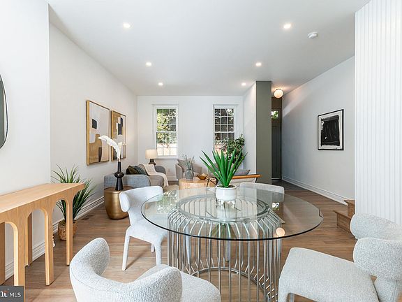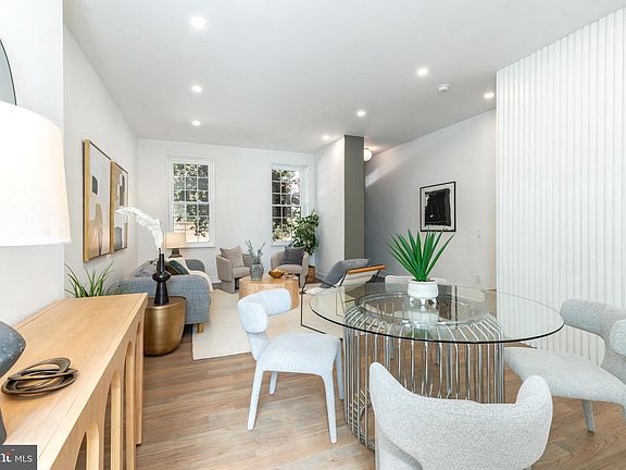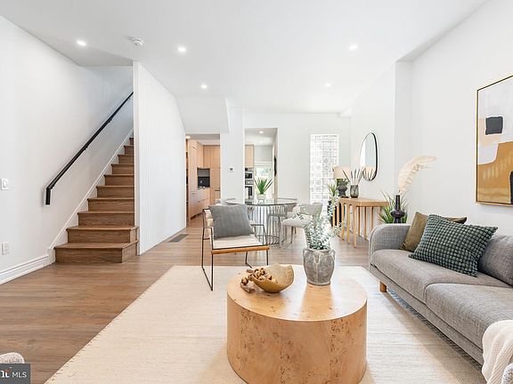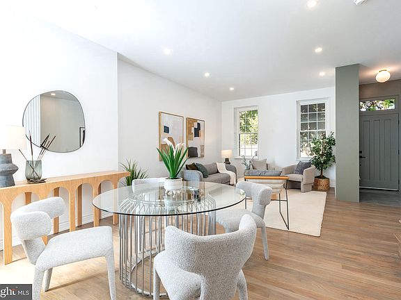 Where Fitler Square converges with Graduate Hospital—steps from 23rd & Bainbridge and about a one-minute stroll to Heirloom Market—2311 Grays Ferry is a three-bedroom, 2.5-bath, 1,900 SF, 18-foot-wide residence fully transformed by an impeccable full-gut renovation and QB3’s warm, modern design. Enter through a custom mahogany front door to a porcelain herringbone-tiled vestibule with tailored built-ins (uppers, bench & cubbies), then into sunlit living/dining spaces with 9′7″ ceilings, cashmere-gray, site-finished red-oak floors, an architectural slat wall, and a vertical glass-block light column. At the center is a custom chef’s kitchen—light-oak cabinetry with brass hardware, Caesarstone slab counters/backsplash, Bosch appliances including a convection wall oven and 5-burner gas cooktop, a panel-ready Blomberg refrigerator/freezer, and an oversized peninsula with a deep undermount sink beneath a sculptural brass/globe pendant—framing a clean sightline to the front windows. A tiled rear landing discreetly serves a chic powder room and opens to a fenced patio for coffee, herbs, and evening grilling. Upstairs, two sun-splashed bedrooms feature deep-set windows and hardwoods; the hall bath blends encaustic-style patterned tile, a white-subway tub/shower with niche, matte-black fixtures (including handheld), and a floating stone-topped vanity. A dedicated laundry room adds uppers, a butcher-block folding counter, deep utility sink, and LG gas washer/dryer. The top-floor primary suite feels boutique with two closets, a ceiling fan, mini-split zoned comfort, and a spa bath with twin vessel sinks, wall-mounted faucets, oval black-rim mirrors, vertical kit-kat tile wainscot, and a walk-in shower finished in vertical white tile over warm-taupe ribbed tile with a charcoal hex-mosaic floor. A finished lower level provides flexible bonus space plus utility/storage. With all-new systems (roof, windows, doors, floors, HVAC, hot water heater) and an approved 10-year tax abatement, this QB3-crafted 1908 row home pairs high design with turnkey convenience—moments from the Schuylkill River Trail and easy South Street Bridge access, walkable to UPenn and Center City, parks, top-rated restaurants, and shopping, with quick connections to CHOP, Drexel, and I-76.