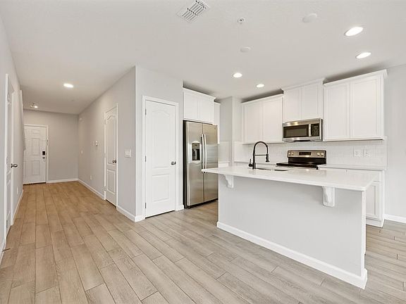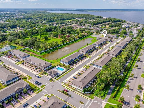 One or more photo(s) has been virtually staged. Ask about a lender provided RATE BUY-DOWN CREDIT on this home! Seller may consider buyer concessions if made in an offer **WELCOME HOME** Built in 2023, this MOVE-IN READY townhome in the desirable Towns at Lake Monroe Commons offers modern comfort, style and convenience in one of Sanford’s newer communities! Meticulously maintained and in excellent condition, this home features thoughtful UPGRADES and a fresh, on-trend design that create instant appeal. From the moment you arrive you will appreciate the attractive CURB APPEAL, enhanced by manicured landscaping, a paver driveway, even the garage was considered and has an epoxy floor! Stepping inside, you will find WOOD LOOK TILE FLOORING throughout your main living areas, paired with plush carpet in the bedrooms for a warm and inviting feel. The OPEN CONCEPT floor plan is filled with natural light thanks to sliding glass doors that frame a relaxing WATER VIEW and open to a patio. The spacious living and dining areas flow seamlessly into a stylish kitchen – complete with STAINLESS STEEL APPLIANCES, a subway tile backsplash, pantry storage, ISLAND with bar seating, upgraded faucet, and recessed lighting. Upstairs, the thoughtful layout places the PRIMARY SUITE at the front of the home for added privacy. Your retreat features a generous WALK-IN CLOSET and well appointed en-suite bath with a dual sink vanity and a walk-in shower, updated in 2024 with new shower glass. At the back of the home the secondary bedrooms share a full guest bath, creating a smart separation of space. A convenient second floor laundry keeps chores simple, while a half bath on the main level makes hosting guests effortless. Amenities include a sparkling COMMUNITY POOL just down the street, and the location can’t be beat. Minutes from the Sanford RiverWalk, Fort Mellon Park, Lake Monroe, Downtown Sanford, and the Central Florida Zoo & Botanical Gardens, you will have endless options for dining, shopping, and recreation. Easy access to SR 417 and I-4 also makes commuting a breeze. This is your opportunity to own a like-new townhome with updates already in place, a water view to enjoy daily, and a LOW MAINTENANCE lifestyle in one of Sanford’s most convenient areas. Every detail has been designed for both comfort and style – clean, bright, and completely move-in ready – call today to schedule a tour!
