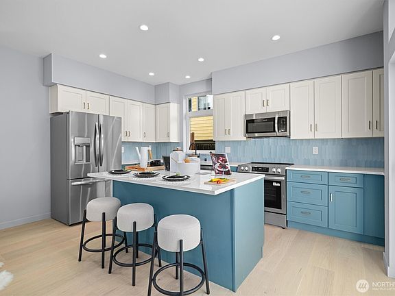 Step into this thoughtfully designed new construction home where modern style meets everyday comfort. The designer kitchen showcases two-tone cabinetry, quartz countertops, and stainless-steel appliances, perfectly connected to an open-concept dining and living space. Slide open the patio doors and enjoy seamless indoor-outdoor living on your private deck. Upstairs, unwind in the generous primary suite featuring vaulted ceilings, a spa-inspired bath with heated floors, and a walk-in closet with built-ins. Additional highlights include stylish bathrooms with heated flooring, energy efficient heating and cooling, EV ready off-street parking, and a dedicated laundry area—every detail carefully considered.