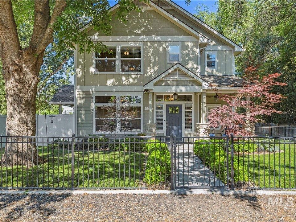 Immaculate North Boise home on a semi-private, quiet, dead-end street with pedestrian pathway to Sunset park. Only 10 years old with one occupant. Lots of mature shade trees surround this beautifully landscaped property. Walking distance to grocery store at 36th & State, Veterans Park, greenbelt, Sunset Park and Boise foot hills. Beautiful open kitchen with granite counters and breakfast bar. Hardwood floors. Open living space with gas fireplace in living room. Large bonus room over garage that is fully equipped with 125 inch automatic movie screen, high-end ceiling mounted projector, theater surround sound system, ductless Samsung HVAC, black-out shades, bar counter and beverage refrigerator. The property is beautifully landscaped and completely fenced with wrought iron and vinyl fencing. Double insulated attic. Oversized 2-car garage. Newer 10x8 storage shed. This immaculate home is sparkling clean, in like new condition and move-in ready.