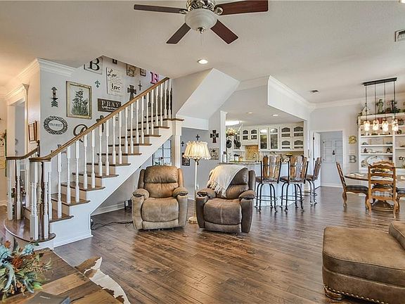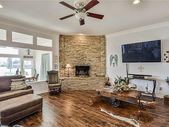 Waterfront home on huge open part of canal (not many like it)! Wood floors through out the house. Great kitchen! Open concept living, dining and sunroom with huge windows all overlooking the water. Beautiful stacked stone fireplace accents the living room. Back porch is shaded for evening entertaining. Oversized 3 car garage with room for 6'x12' work bench & sink area. Upstairs is perfect for game room, hobby room or kids room.