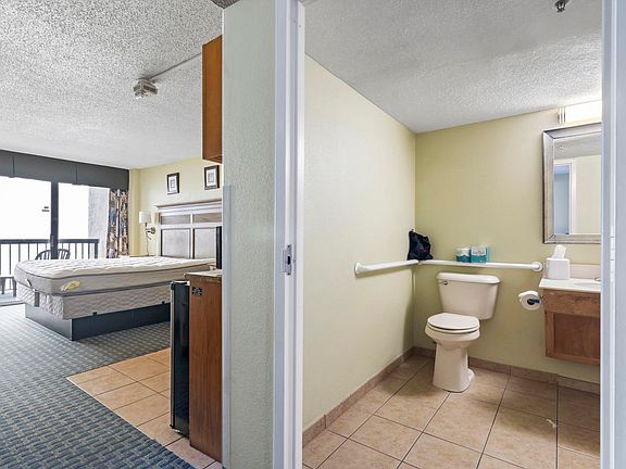 Wake up to breathtaking Atlantic Ocean views from your private balcony in this fully furnished and well-appointed efficiency condo at Compass Cove Resort! Perfect for a vacation getaway or investment opportunity, this oceanfront retreat offers the ultimate coastal lifestyle. Step outside and enjoy resort-style amenities, including multiple indoor and outdoor pools, hot tubs, a lazy river, a fitness center, a game room, and on-site dining at The Compass Rose and The Crow's Nest. With direct beach access, you're just moments away from sun, sand, and surf. Located in the heart of Myrtle Beach, you're minutes from top attractions like Broadway at the Beach, the Myrtle Beach Boardwalk, championship golf courses, and an exciting selection of shopping, dining, and entertainment options. Whether you're looking for a relaxing escape or a high-demand rental property, this condo is the perfect fit. Don't miss this chance to own a piece of paradise - schedule your showing today! Measurements are not guaranteed. Buyer is responsible for verifying. Compass Cove Resort is beloved for its many amenities and welcoming atmosphere, featuring over 530 fully furnished condos and an impressive selection of twenty-three water attractions, including six indoor and outdoor pools, three lazy rivers, seven hot tubs, and a variety of kiddie pools. Families, couples, and friends alike flock to Compass Cove for the endless options, relaxing setting, and convenience of oceanfront accommodations. This unit offers the added benefit of a dedicated management team that ensures your investment remains low-maintenance, handling all rental operations, guest services, and upkeep. With high rental demand thanks to Compass Cove’s location and amenities, this condotel is not only a great addition to an investment portfolio but also a personal getaway that’s always ready for you. Enjoy the coastal lifestyle while benefiting from a steady income stream—an ideal choice for any real estate investor! Please ask your agent about lender closing costs incentives for this property.