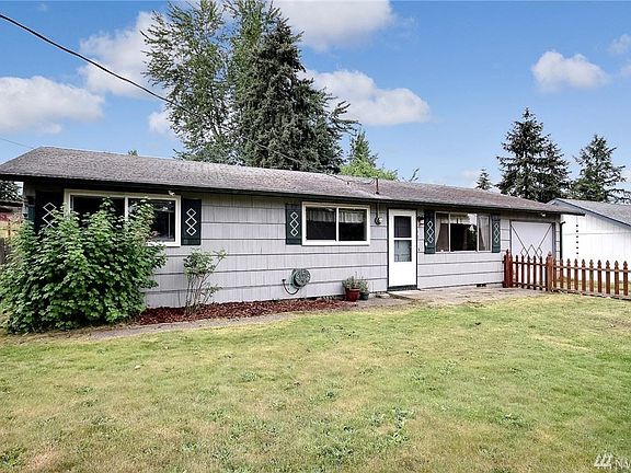 Perfect Starter home with Energy efficient natural gas heating. Rambler with large living room. Kitchen includes pantry and eating space. Hardwood floors throughout under carpet and Laminate flooring. Slider to covered back patio reveals a large fully fenced back yard with 10 x 12 storage shed with loft , childrens play set and gated entry from both sides of the home . Waking distance to Olympic View Elementary & 20 minute walk from Park & Ride.