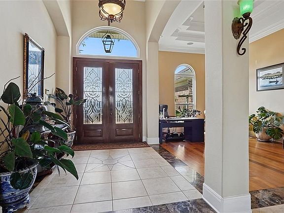 With many warm summer memories in the pool and laughers in the air from the late night gatherings, this water wonderland oasis must be passed on to the next generation. The current owner's kids are gone to create their own splash in life and leave all the wonderful memories for the next owners. This well maintained home offer 4 spacious bedrooms with a possible office serving as a 5th bedroom. There are 4 full Bathrooms throughout the house that are conveniently located with one servicing the pool/patio guest. Walk home to high ceilings, with oversized triple crowning, step down ceilings, and designer custom curve ceilings. The flooring, cabinet accents, color, and lighting fixtures gives the house a Mediterranean AURA. The spacious layout provides plenty of legroom to move around and to bring your designer furnishing touches to life. This house also offers a open kitchen concept with stainless steel kitchen appliances, a Peninsula bar with a granite counter top, and a walk-in kitchen pantry. A warm and cozy fireplace services the formal living room. Walk upstairs to a bonus guest bedroom with a full bathroom for comfort and convenience. The true charm and focal point of this house lies in the backyard. It is perfect to entertain family and friends. There is a salt water pool for the kids, patio cover and cooking/grilling area for all the chefs. Walk down to the Boat dock to launch your toys (jet skis, wake boards, kayak, boats) and take it to the open lake. There is a boat hoist setup in place. There is running water to clean up after your crawfish and crab boil. This is true definition of "BACK YARD LIVING". KOI Fish ponds, wooden trellis, brick and travertine patio flooring, ... There is not enough space to cover all aspects of this spectacular house. I invite you for a tour or viewing and discover it for yourself.