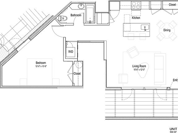 - Total interior livable area: 900 sqft