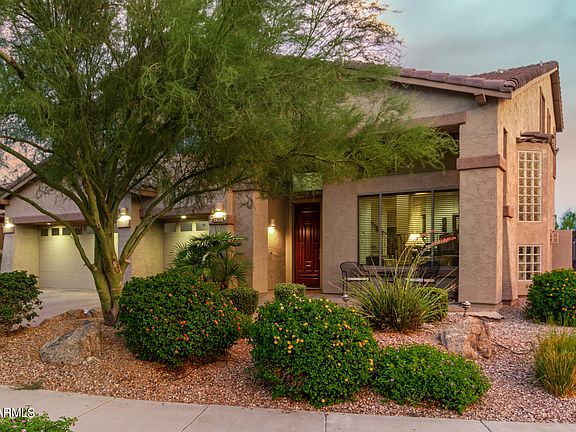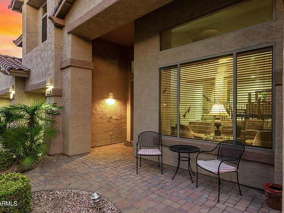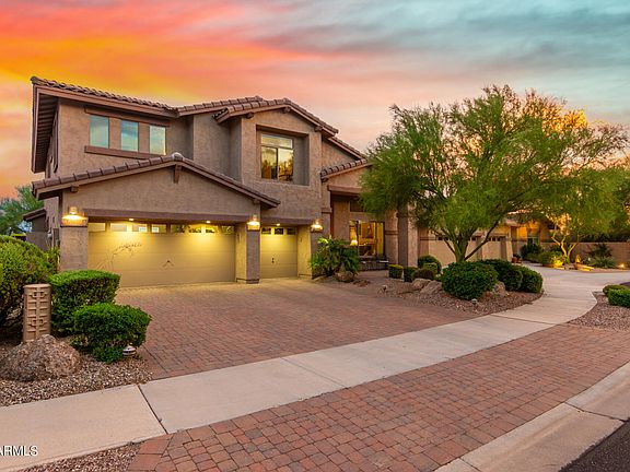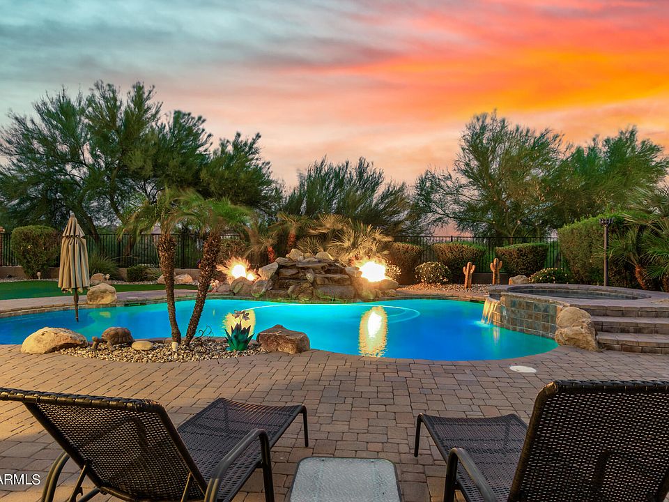 This is the perfect desert oasis to call your next home! Stunning mountain views, gorgeous private resort style backyard. Including lucious maintenance free synthetic turf. Outdoor refrigerator, natural gas BBQ, fireplace, fire bowls & tiki torches surrounding 2 water falls, a heated pool and Jacuzzi and no neighbors behind, just amazing desert views! Bonus theater room with dry bar. Wood blinds through out. Custom built ins in master bedroom closet. Entertainers dream in the huge spacious kitchen including double ovens. Lots of storage including built in cabinets in garage. A short walk out the front door and you are in the beautiful Sonoran desert. super close to shopping and entertainment. This home has so much to offer!