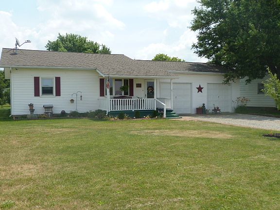 Move in ready ranch with quiet country setting! Everything you need on one level! Open great room to eat in kitchen, plenty of closet and storage space. Bonus propane stove in GR. Xtra large 2 car garage with storage, freshly stained deck, plus covered patio w/ soothing water feature/koi pond. Peaceful back yard also includes mature trees, well maintained landscaping and gardening area, storage shed, even an area for chickens!