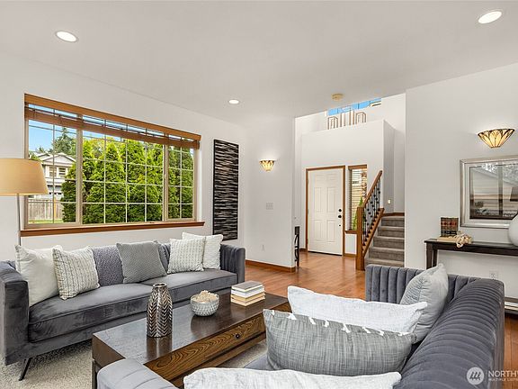 Tucked in a private cul-de-sac of 14 Craftsman homes, this tranquil retreat blends serenity and convenience, just minutes from I-5, vibrant downtown Edmonds. A versatile 4-bedroom, Great Room-style layout w/double-height foyer and NW territorial views dazzles with upgrades: fresh interior/exterior paint, plush new carpet, Café KitchenAid appliances, chic backsplash, modern LED lighting, and low-maintenance siding/windows. Primary Suite offers vaulted ceilings, a luxurious 5-piece bath, walk-in closet. Enjoy a sunlit, low-maintenance deck and lush, professionally landscaped backyard with paver patio for serene outdoor living. A long, flat driveway and spacious 2-car garage w/built-in storage add practicality and charm to this stunning home!