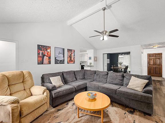 Charming SINGLE -story home in the established Fairfax community offers a spacious, light-filled layout w/ tasteful upgrades throughout! Step inside to vaulted ceilings, fresh paint, updated luxury vinyl flooring & modern updated wood burning fireplace. The kitchen shines w/ granite counters, subway tile backsplash, painted cabinets & black appliances. Formal dining could flex as a home office. Split floorplan offers privacy w/ a LARGE primary suite featuring a walk-in closet, open vanity w/ granite, & a tiled shower. Secondary bedrooms are generously sized w/ an updated shared bath. Outside, enjoy a HUGE fenced yard w/ mature shade trees, fresh sod, upgraded fencing, patio w/ TV mount, & bonus storage shed. Full-size garage, great curb appeal & minutes to I-45, Exxon Campus, shopping, dining & Bush IAH. Move-in ready w/ classic charm & updates in all the right places!