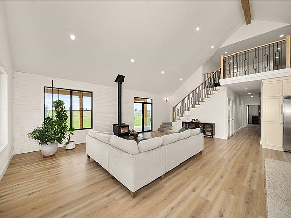 Discover this stunning Barndominium, where peaceful rural living meets stunning design. Nestled on 5.9 acres, this French Cottage-inspired barndominium blends modern craftsmanship with timeless charm. Just 5 minutes from Medical Lake, 10 minutes from Amazon, Fairchild AFB, and Northern Quest for dining, concerts, shows, and the casino—plus multiple lakes within 15 minutes for boating, fishing, or relaxing. Inside, the open-concept layout features soaring ceilings and expansive windows that flood the home with natural light. Luxury finishes shine throughout, from custom cabinetry to heated bathroom floors. The chef’s kitchen flows effortlessly into the living and dining areas, perfect for both daily life and entertaining. The private primary suite offers a spa-like escape with upscale finishes. A massive 50x50 attached shop provides endless space for storage, hobbies, or vehicles. With its blend of elegance, comfort, and convenience, this home redefines country living.