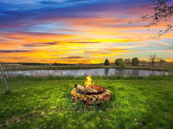 Charming acreage on a hard surface road is just what you have been waiting for!! Large open concept kitchen/dining room and huge living room. Main floor bedroom as well as 3 more bedrooms upstairs. The spring fed, stocked pond will build memories for a lifetime with friends and family. Insulated 24x48 steel building will cover all your toys/boats and equipment. Just under 4.5 acres. Main floor laundry and a double attached garage.