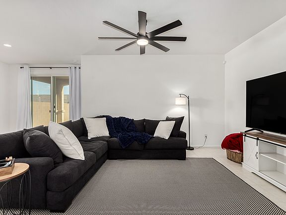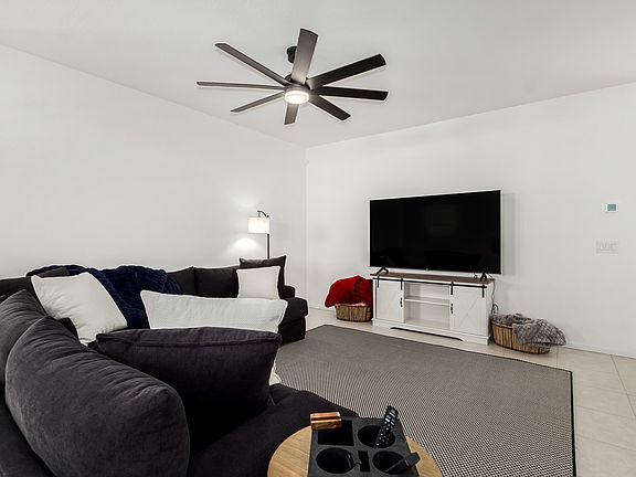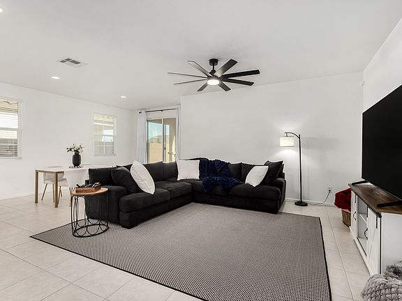 Take advantage of this fantastic rental opportunity! This desirable corner lot home welcomes you with a 2-car garage, tasteful stone accents for excellent curb appeal. Discover a captivating open layout with high ceilings, a soothing palette, blinds, and durable tile flooring. The gourmet kitchen boasts quartz counters, white shaker cabinets with crown moulding, recessed lighting, stainless steel appliances, a pantry, and a peninsula with a breakfast bar for casual dining. The primary suite showcases soft carpeting, an ensuite with double sinks, and a practical walk-in closet. Spend enchanting evenings in the lovely backyard, featuring a covered patio, stylish pavers, and pristine artificial turf for outdoor activities. This value will surely not disappoint!