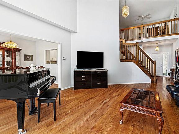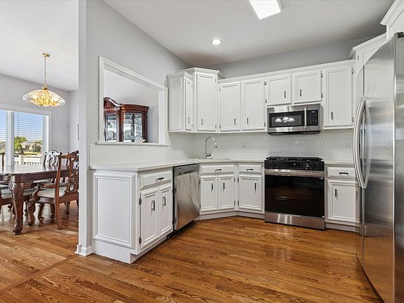Located in The Lakelands of Plainfield, a double-width deck provides sweeping panoramic views of the lakefront-Highly sought after, and rarely available. While the view from the rear of the home is its selling point, the home offers so much more on the inside! The main level features a dramatic living room with vaulted ceilings and full-height windows framing the lake to perfection. A formal dining area with floor to ceiling water views, transitions to a designer kitchen with quartz countertops, white cabinetry, farmhouse sink, and stainless steel appliances. The breakfast nook provides versatility for casual dining or expanded storage. A discreetly placed laundry room and guest bath with pocket door complete this level. Upstairs, a loft space overlooks the living room and offers an ideal setting for an office or lounge. The primary suite is a retreat with expansive lake views, a generous walk-in closet, and a spa-inspired bath with jet tub, dual vanities, and separate shower. A second bedroom and well-appointed full bath provide comfort and privacy for guests. The walkout lower level extends the home's living space with a custom wet bar, spacious recreation room, and French doors leading to a private bedroom with full bath and walk-in closet. Large windows continue to capture the lakefront setting. An oversized two-car garage with concrete driveway enhances convenience. Recent updates include new HVAC system (2025) New windows on the 2nd floor (2024) New Garage door (2024) Upgraded countertops in the kitchen (2024) and fresh paint throughout (2025) Centrally located in Plainfield, this home combines refined design with the rare opportunity for true waterfront living! ________________________________________