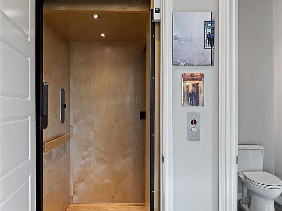 Private elevatorGas cooktopPull out drawersQuartz waterfall islandShaker cabinetryMotorized shadesPrivate patio with fireplace
