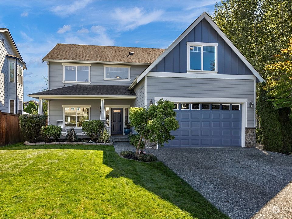 Welcome home! From the charming exterior to the brilliant floor plan this home is a must see. Inviting entry with formal dining room, bright open staircase and spacious open living. Enjoy the kitchen with walk-in pantry, eating space and cozy living area w/ built in shelving & gas fire place. 1/2 bath and laundry on main. Step out the sliding door to a perfect patio for bbq & dining outdoors. Well-appointed primary bedroom with vaulted ceilings, walk-in closet & private bath complete with soaking tub. 3 additional bedrooms, full bath AND extra bonus/playroom complete the upper level. Finished 2 car garage with epoxy flooring. Fabulous location close to Silver Lake recreation, shopping, dining & convenient, quick access to commuter hwys.