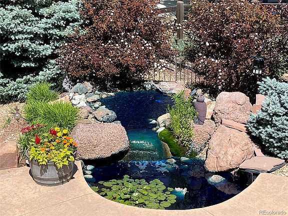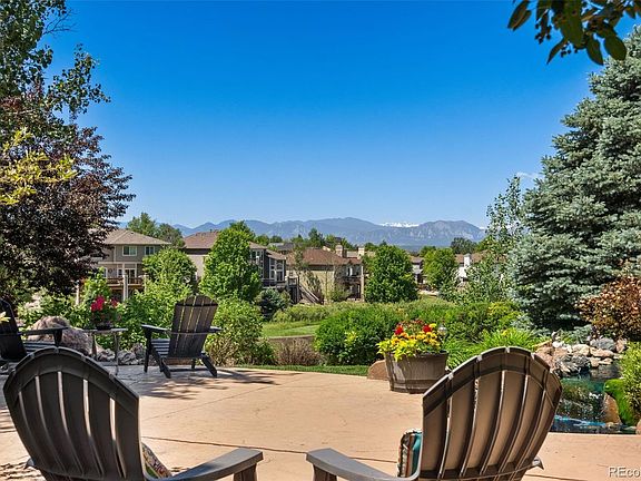 Nestled in a serene location surrounded by mature trees, this stunning 3 bedroom 4 bath home backs to the golf course and offers impressive MOUNTAIN VIEWS. Enjoy sitting out on the large deck or cozy up around the fire pit surrounded by mature landscaping. Listen to the beautiful pond trickle behind you while taking in the mountain views, a true backyard oasis. Upon entering the front door, you'll be greeted by gorgeous mountain views and an inviting, open-concept living space that exudes warmth, sophistication, and abundant natural light. The kitchen features stainless steel appliances, new sleek quartz countertops, a beautiful backsplash, undercabinet lighting, and nice pantry with slide out shelves. Find new luxury vinyl plank flooring through the main floor. The kitchen seamlessly flows into the large family room with a cozy fireplace. Upstairs, find a large primary suite with a 5-piece master bath, 2 additional nice-sized bedrooms, and a full bath. The finished garden-level basement offers a large family room, wet bar, and 3/4 bath. Find numerous additional upgrades, including a new whole house attic fan, a new 50-gallon water heater, new interior paint, professionally built-in stereo wiring with Control4 application, tinted back windows on all levels, smart HVAC control, updated wireless sprinkler control with weather detection and beautiful landscape lighting. Enjoy the community pools, parks, and pickleball courts. This home offers the perfect blend of indoor and outdoor living.
