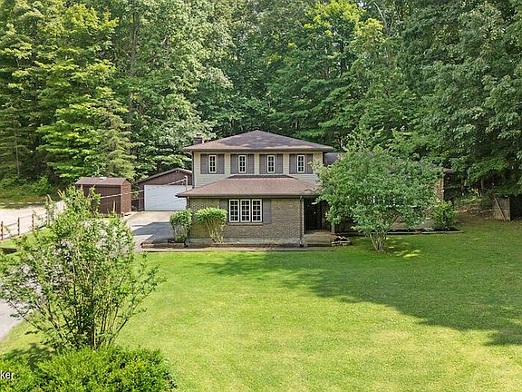 Outside, enjoy the peace and quiet of your wooded lot from the patio or explore the possibilities the land has to offer. Car enthusiasts, hobbyists, or anyone in need of extra space will love the oversized 2-car detached garage, in addition to the convenient 2-car attached garagea rare combination that offers abundant storage and workshop potential.