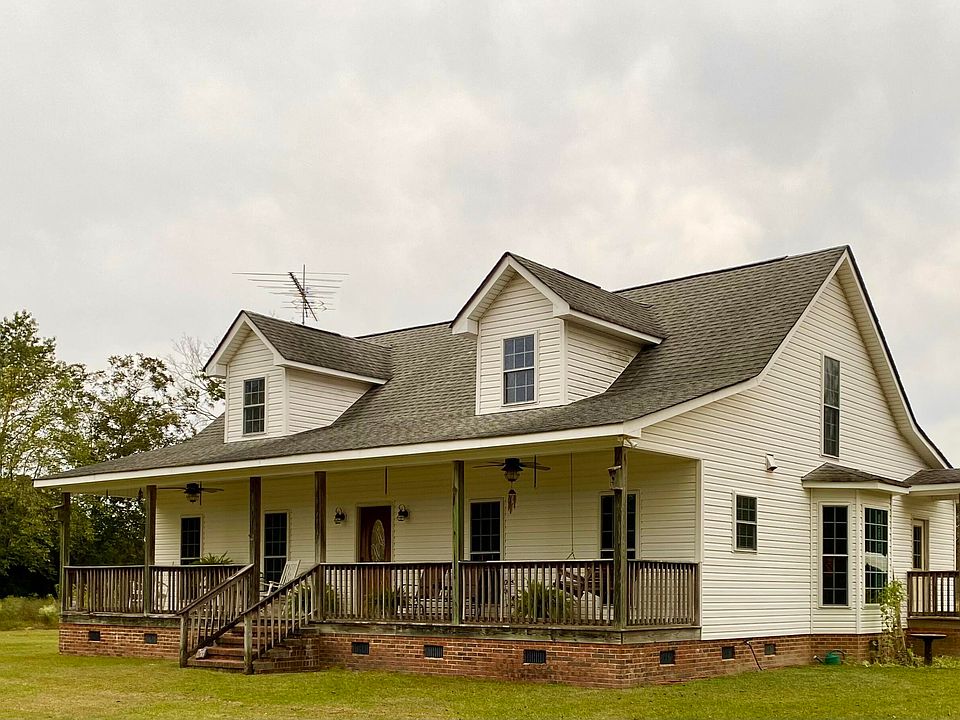 Secluded 4 Bedroom/2.5 Bath Home on aprox. 23.5 acres. This Open Floor Plan Home offers a Great Room with Fireplace, Spacious Downstairs Primary Suite, and Convenient Mud Room. Kitchen with Casual Dining and Bay Window. Enjoy the Inviting Covered Front and Back Porches and Gorgeous Stocked Pond.