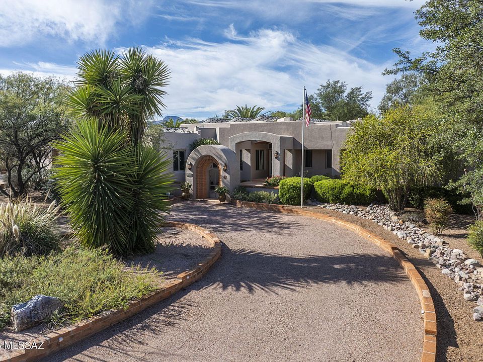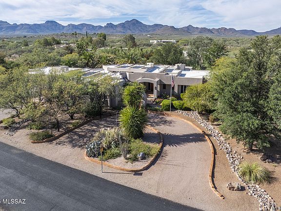 Nestled within the Tubac Valley Country Club and set on nearly one acre of lush, mature landscape--with towering shade trees and palms--this impressive 4,406 sq. ft. residence blends old-world charm with refined modern finishes. Featuring 4 bedrooms and 5 bathrooms, the home is constructed with insulated concrete forms (Rasta R-40) which provided exceptional insulation and designed for effortless entertaining.A circular driveway welcomes you into a peaceful courtyard with a fountain, guiding you to the elevated grand entrance. Inside, soaring ceilings, a warm color palette, and expansive gathering spaces immediately capture your attention... SEE MORE Every detail has been thoughtfully curated to balance high-end luxury with everyday comfort, creating a home that truly embraces the Tubac lifestyle, back patio is a private oasis where you can lounge by the pool, grill on one of the built-in BBQs, or simply take in the tranquil surroundingsonce you settle in, you may never want to leave. Walls of Andersen windows frame stunning views and seamlessly connect the interior to the outdoors. The designer kitchen features custom wood cabinetry, mesquite countertops, top-of-the-line stainless appliances, and multiple pantries perfectly suited for hosting memorable dinner parties.